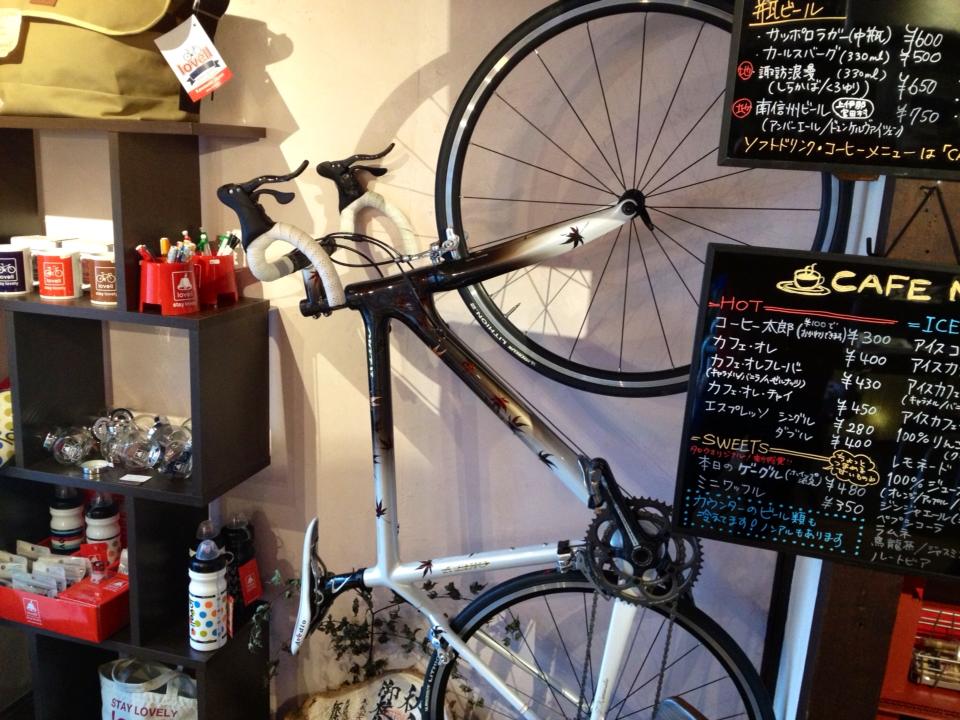 自転車雑貨のあるカフェ 本日は安曇野を離れてかねてから行ってみたかった下諏訪町にあるタロウ珈琲弐号店へ。自転車関連雑貨に囲まれたカフェで美味しいコーヒーとホットドッグを頂きながら、気さくなオーナーとの会話で楽しいひとときを過ごさせて頂きました。